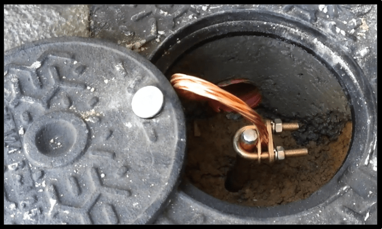 La toma de tierra (T) consiste en uno o varios electrodos de cobre anclados al terreno y accesibles a menudo únicamente a través de arquetas. Estos elementos son básicamente picas o placas que pueden estar enterradas verticalmente u horizontalmente.