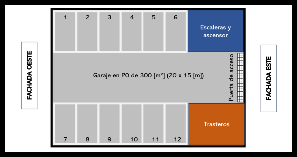 Datos de partida del garaje → número de plazas (n), superficie total (S) y altura media (H)